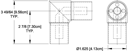 形状:90°エルボータイプ(非対称)、コネクタ無し |